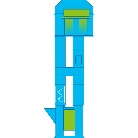 由于水泥企業(yè)規(guī)模的不斷擴(kuò)大和節(jié)能減排的要求,在國(guó)內(nèi)外采用輥壓機(jī)用于生料終粉磨和水泥聯(lián)合粉磨也越來(lái)越多,其單臺(tái)的能力也不斷擴(kuò)大,使得與之相配套的輸送設(shè)備-單臺(tái)提升機(jī)的能力也在提高。由于此處的物料是塊狀的且磨琢性很大,因此只有板鏈提升機(jī)能夠適用。但由于輥壓機(jī)出輥物料不穩(wěn)定及磨琢性大等特性及生產(chǎn)工藝問(wèn)題,經(jīng)常造成提升機(jī)堵料、漏料、設(shè)備振動(dòng)、電機(jī)頻繁跳停、物料回料量大等現(xiàn)象,嚴(yán)重的影響了整個(gè)系統(tǒng)的運(yùn)轉(zhuǎn)率。我公司集多年板鏈提升機(jī)設(shè)計(jì)和制造經(jīng)驗(yàn),開(kāi)發(fā)出了適用于此工藝系統(tǒng)的大輸送量的大型板鏈斗式提升機(jī),使得整個(gè)工藝系統(tǒng)不因板鏈斗式提升機(jī)的故障而影響整個(gè)系統(tǒng)的運(yùn)轉(zhuǎn)率。